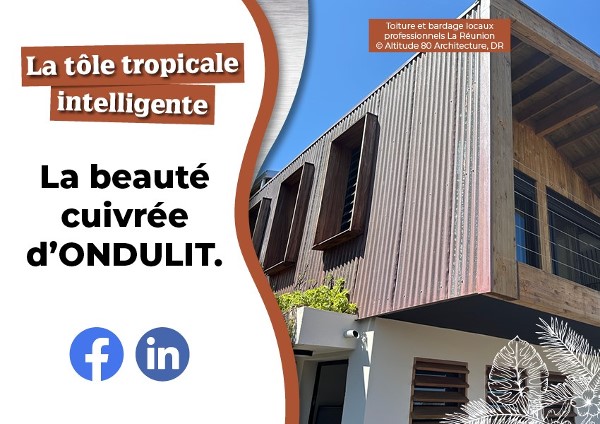 ECOTOLE fondée en 2008, est dans l’Océan Indien, la plateforme de la société Ondulit, qui développe une large gamme de solutions répondant à toute exigence technique et esthétique. Nous sommes spécialisés dans les toitures et bardages performants et fabriquons des produits qui facilitent et apportent les performances demandées par la règlementation thermique et acoustique (RTAA DOM). Nos unités de production des tôles se trouvent à La Réunion.